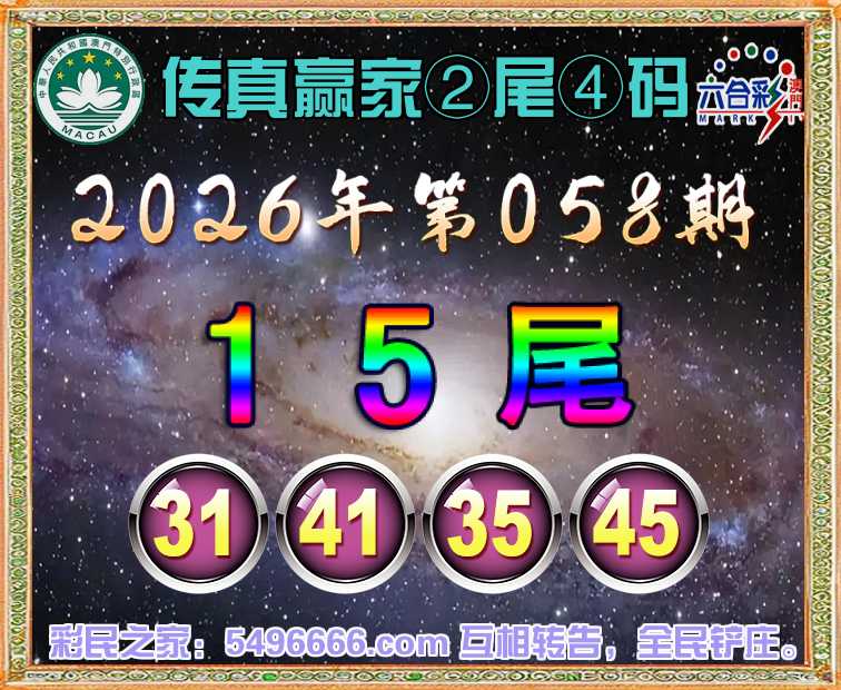 058期:《传真赢家》 🌸②尾④码🌸【15尾主:31.41.35.45】开:31