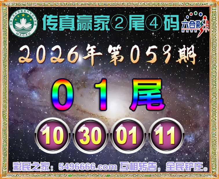 059期:《传真赢家》 🌸②尾④码🌸【01尾主:10.30.01.11】开:10