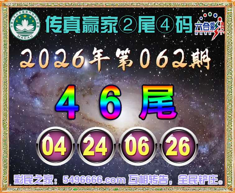 062期:《传真赢家》 🌸②尾④码🌸【46尾主:04.24.06.26】开:24